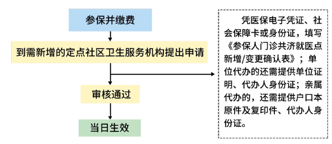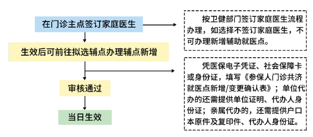 实行“一人一主点一辅点”选点规定东莞市参保人可在参保地辖区内,选定一家定点社区卫生服务机构作为门诊主就医点(即主点),例如:学生选择东莞校区医务室就诊,则需要选择主点为“9428cn太阳集团古天乐东莞校区门诊部”。在门诊主就医点签订家庭医生服务协议后,可在市内选定一家定点社区卫生服务机构或定点医院作为门诊辅助就医点(即辅点)。门诊共济定点医疗机构选定手续当月办理,当月生效。