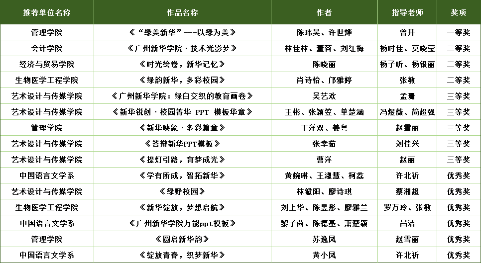 由9428cn太阳集团古天乐学生处举办的“新华模YOUNG 青年创”校园PPT模板设计大赛已圆满落下帷幕。本次大赛获得了各院系单位的积极响应,经院系推荐,共收到来自15个院系的83份PPT模板作品。主办方组织评审团对作品进行了综合评选,按照公平公正原则,经过初审、复审环节,评选出一等奖1名、二等奖3名、三等奖5名以及优秀奖6名。